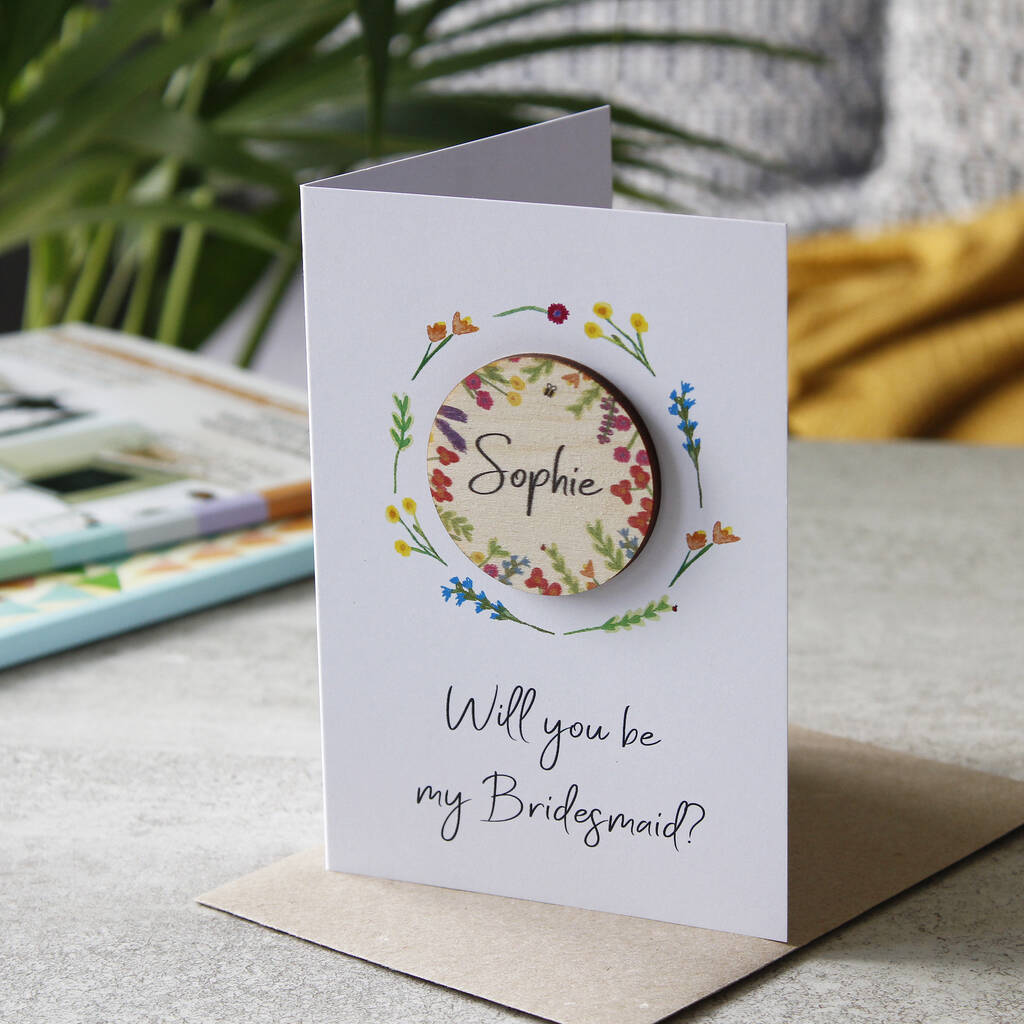 What better way to pop the question to your besties than with this adorable bridesmaid card? Featuring a cute wildflower design and a removable wooden magnet, it’s perfect for friends who adore nature or gardening. They can stick the magnet on their fridge and say yes to being part of your big day in style!